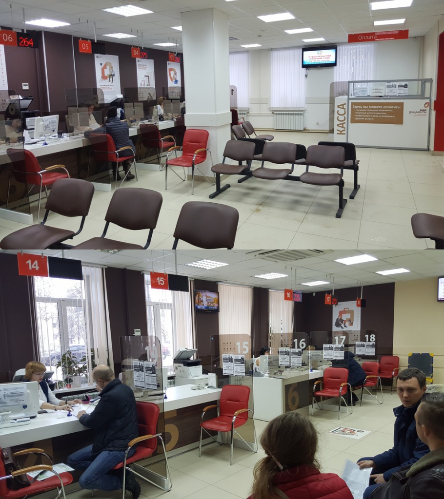 Видеоэкраны расположены в залах ожидания. Отличительной особенностью является аудитория, состоит из жителей города, которые обращаются за услугой к Государству – получают справки, меняют паспорта и права на автомобиль, оформляют разрешения и льготы. Нахождение клиента в зоне ожидания составляет не менее 15 минут, что позволяет просмотреть рекламный блок в полном объеме не менее одного раза. В настоящее время для размещения информации доступны экраны по адресам: